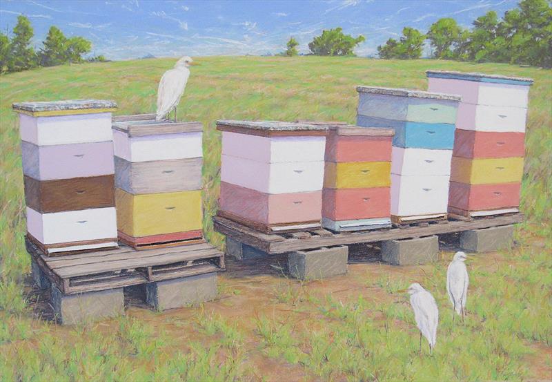 Cattle Egrets 18x26, pastel on tan paper,  $1750 by: David Mudrinich Entry ID: 575016
