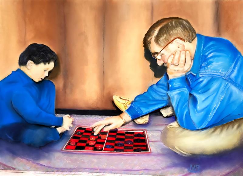 The Checker Players 18x24, Pastel on sandpaper,  $NFS by: Meg Simons Entry ID: 576079