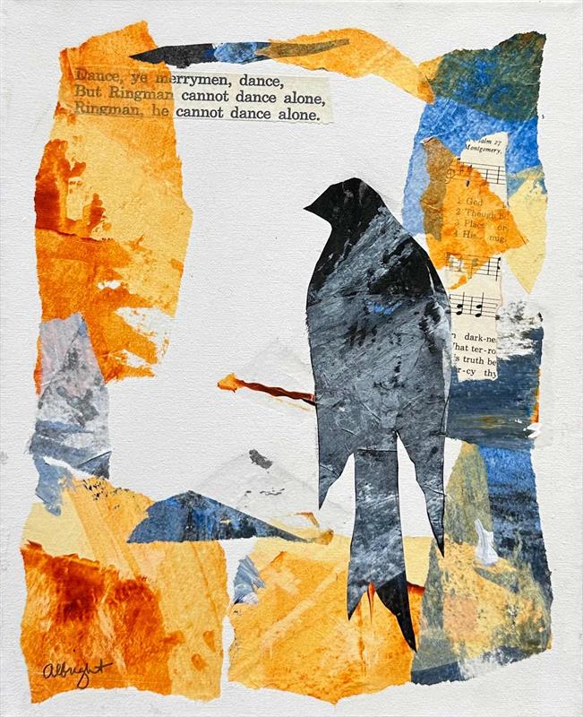 Dance Ye Merrymen 10x8, hand painted collage papers,  $$350 by: Judy Albright Entry ID: 573175