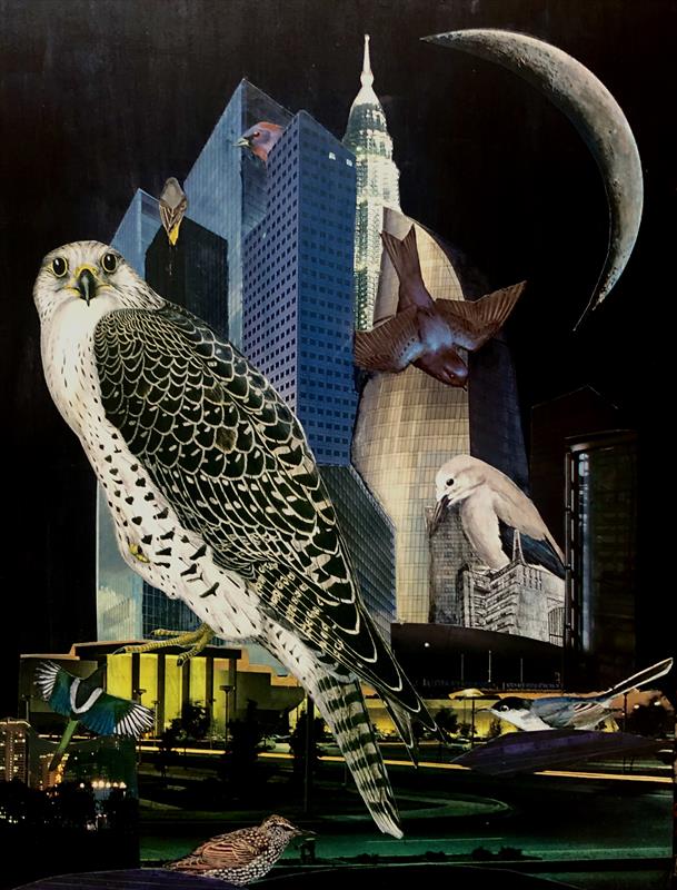 Birds in the City - Night 12x9, Collage on Cradle Board,  $300 by: Diane Anglim 1st Place Entry ID: 574826