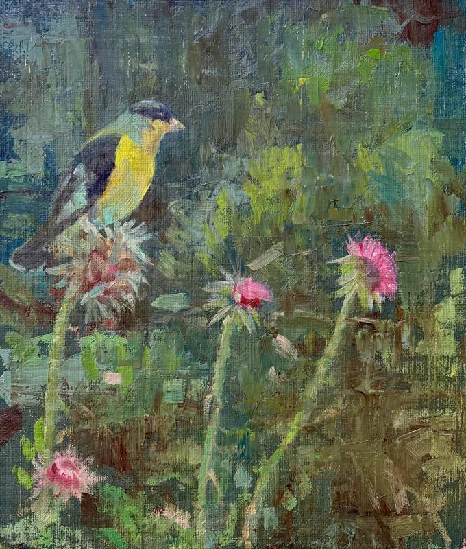 Finch and Thistle 12x10, Oil,  $ by: Mary Frankel Entry ID: 574597