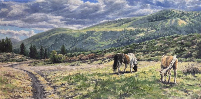 Colorful Companions 15x30, Oil,  $1400 by: Sally Kuperberg Entry ID: 581346
