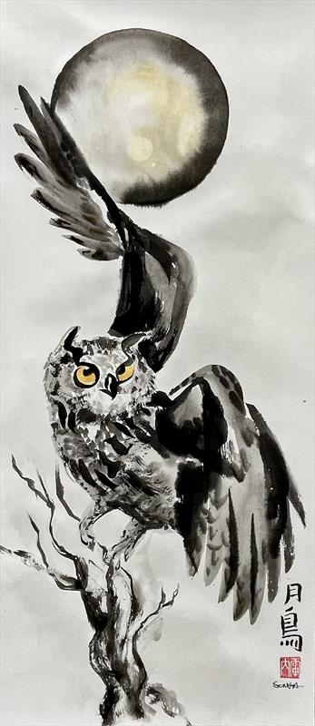 Moon Bird 27X12, Sumi-e ink, watercolor,  $1850 by: Renee Sonka Entry ID: 582984