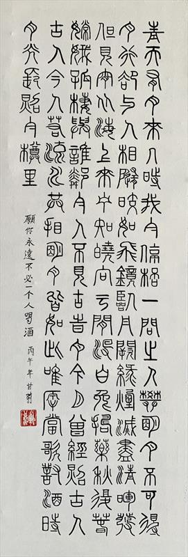 Drinking With The Moon 38x16, Ink on Xuan Paper,  $3000 by: Gail Threinen Entry ID: 584986