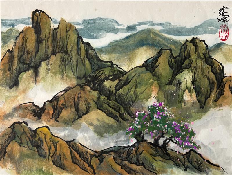 Mountain Spring 18x22, Watercolor & Ink on Rice Paper,  $750 by: Judith Schutzman Entry ID: 586854