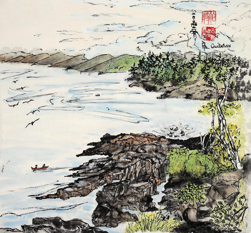 Up-North 14x14, Sumi-e Ink, watercolor & rice paper,  $$500 by: Patricia Gustafson Entry ID: 587398