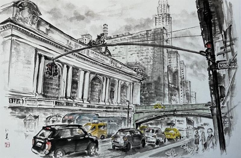 Bustling City 12x18, sumi ink and water colors,  $NFS by: Hitomi Tatsumi Entry ID: 587559