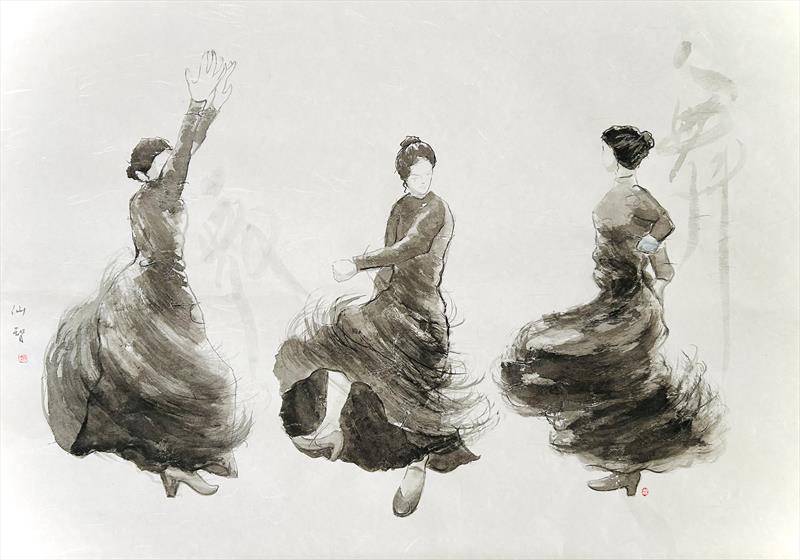 Flamenco Dance 22x31, Sumi-ink ,  $1200 by: Satomi Kamei Entry ID: 587586