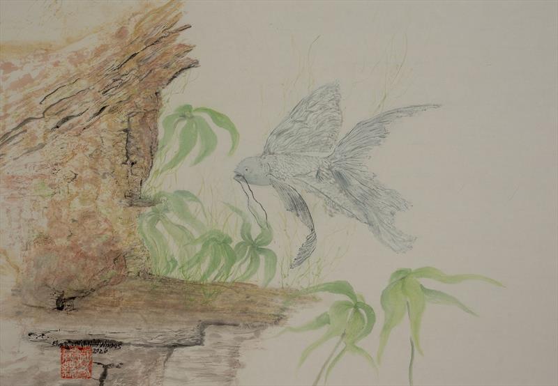 Gently Floating 2026 18x12, chinese watercolor and ink on Rice Paper,  $795 by: Elise Windus Entry ID: 587649