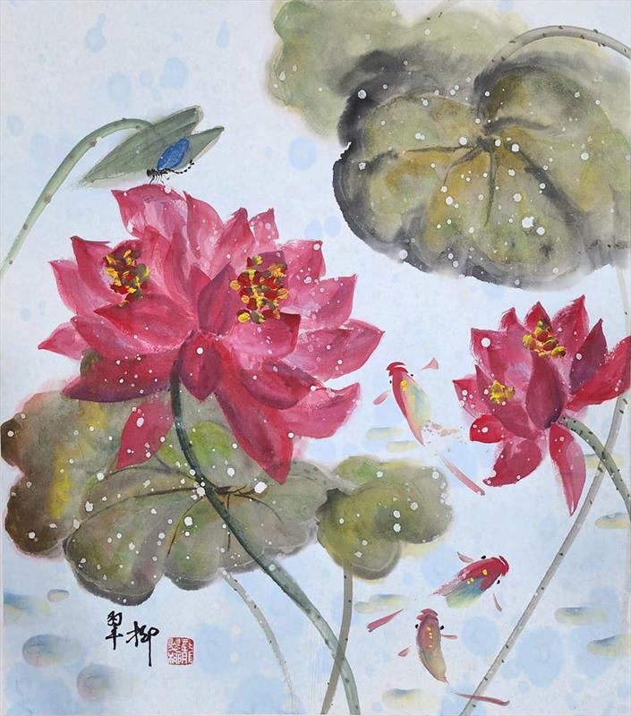 Harmony In The Lotus Pond 18x20, Colors and Ink on Rice Paper (Backed),  $800 by: Veronica Loong Entry ID: 587815