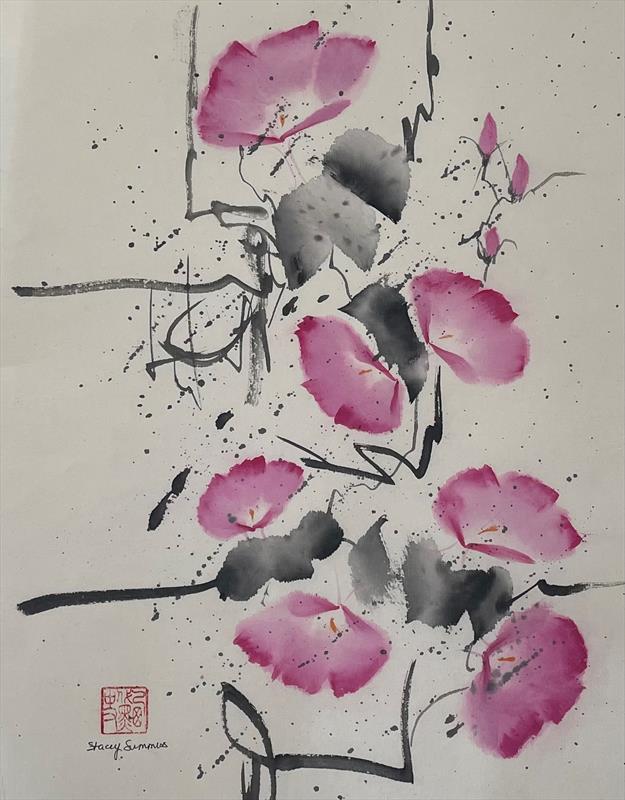 Wild Morning Glories 16x20, Ink and Chinese Watercolor,  $225 by: Stacey Summers Entry ID: 587877