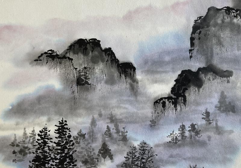 Evening's Repose, Peace and Quiet 8x10, Brush painting, Asian ink/watercolor on rice paper,  $275 by: Anne Klein Entry ID: 588012