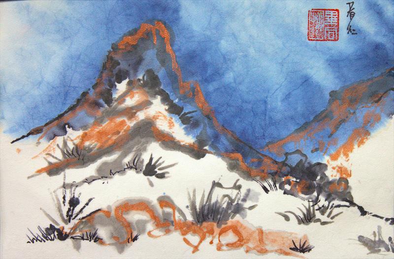 Winter Dreaming in Arizona 12x8, Sumie Ink with watercolor and metalic paint on ric,  $250 by: Toni Bigelow Entry ID: 588035