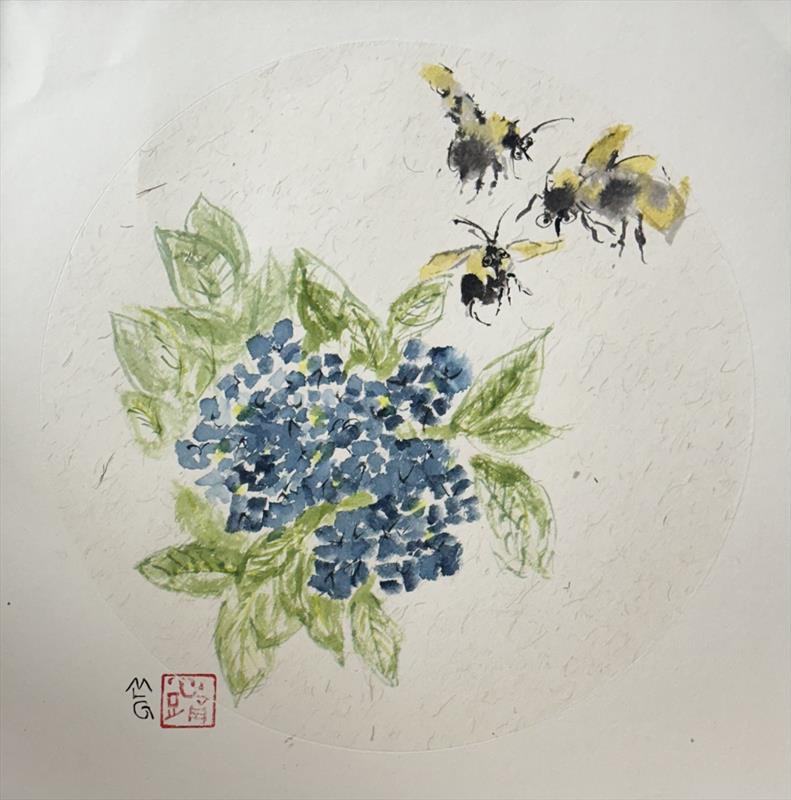 August Pollen Carriers 16x16, Sumi-e and Watercolor,  $200 by: Mary Gunderson Entry ID: 588048