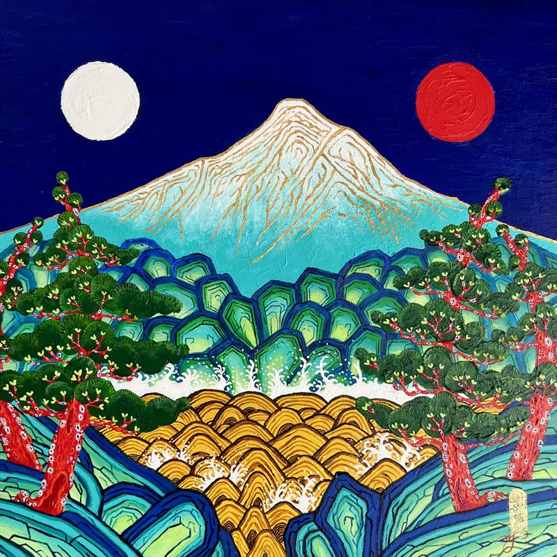 Sun, Moon and mt. Hood 24x24, Acrylic,  $1000 by: Haelyn Y Entry ID: 579042