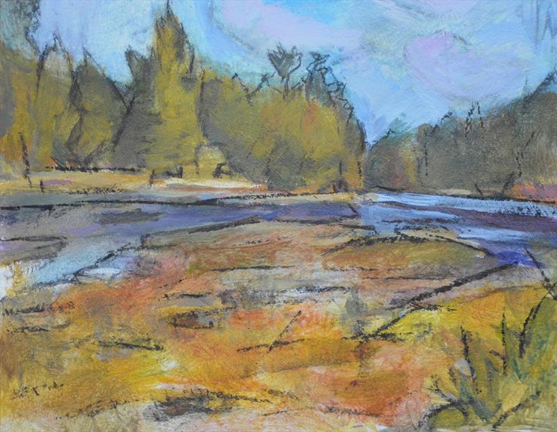 Golden Wetland Meadow 11x14, charcoal & acrylic on panel,  $825 by: Kathryn Cotnoir Entry ID: 579083