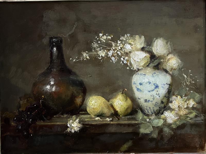 Amber Glass with Roses and Blue and White 14x18, Oil,  $5400 by: jacqueline kamin Entry ID: 580223