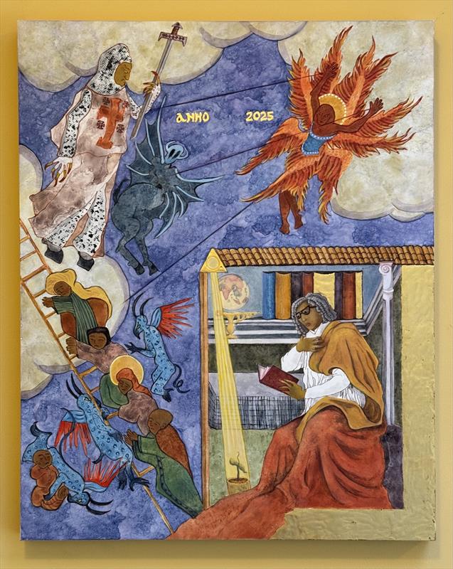 Dark Ages 20x16, Egg tempera and gold leaf,  $1000 by: Roberta Levitow Entry ID: 582687