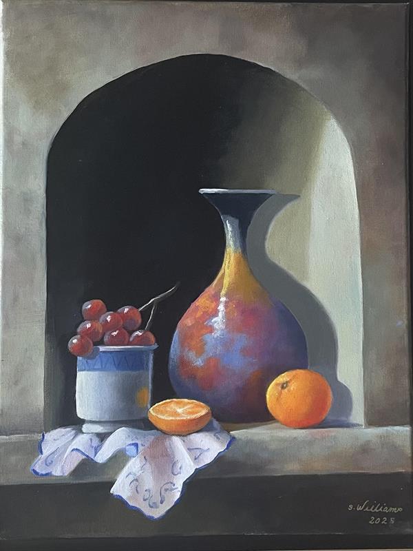 Vase, Oranges and Grapes 14x18, Oil,  $365 by: Sandra (williams) Fullmer Entry ID: 583947