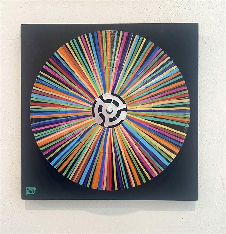 Keep Austin Colorful 8x8, Painted Up-cycled 45 Record on Wood Panel,  $115 by: Jenny Swannack Entry ID: 585290