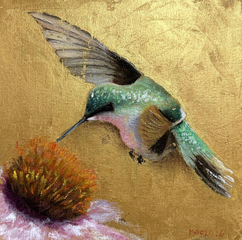 Suspended sweetness 12x12, Soft Pastel and Gold Acrylic,  $NFS by: Karlo Domingo Entry ID: 587347