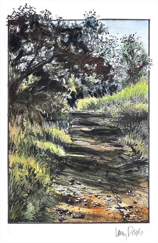The Shadows on Coyote Alley 16x10, Ink-and-watercolor,  $1450 by: Larry Deeds Entry ID: 592010