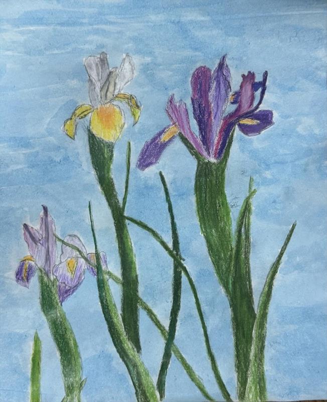 Dancing Irises 10x9, Pencil Colors and Acrylic ,  $50 by: Tashvi Balaji Entry ID: 592382