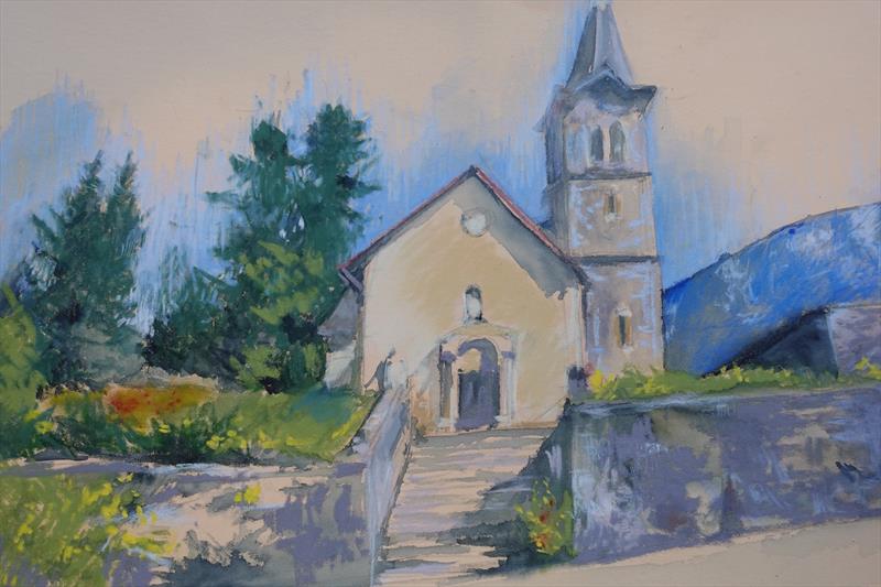 Eglise de Lépin le Lac en France 16x20, Soft Pastel,  $NFS by: Mélissa Losano Entry ID: 596744