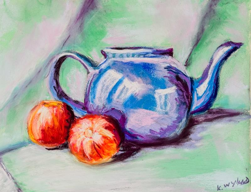 Apples and teapot 9x12, Soft Pastel,  $225 by: Katharine Wyland Entry ID: 596961
