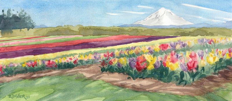 Tulip Rainbows 7x17, Watercolor,  $450 by: Emily Jung Miller Entry ID: 592074