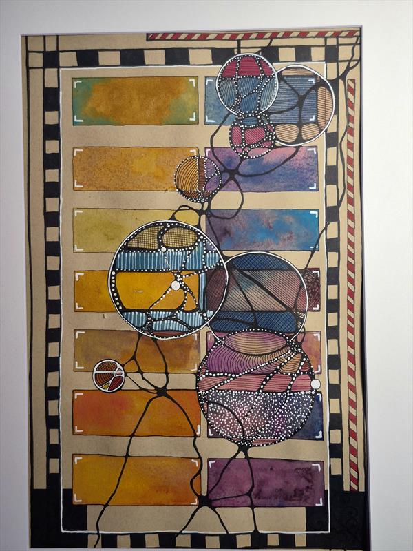 What in the World? 13x18, Watercolor and Acrylic, mixed media,  $500 by: Janet Fulk Entry ID: 594043