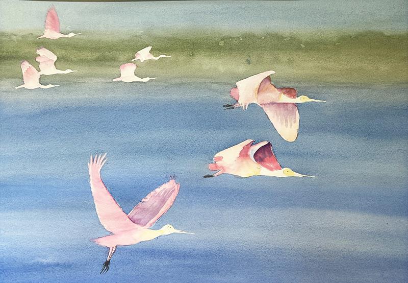 Roseate Spoonbills 14x20, Watercolor,  $500 by: Shevawn Eisman Entry ID: 594584