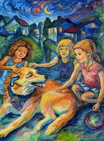 Acrylic on canvas, Oil pastel, Collage, Acrylic pu