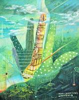 Acrylic, ink, metallic oil pastel, and soft pastel